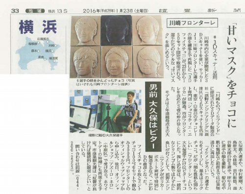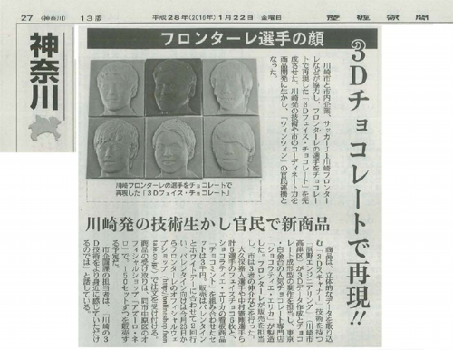 神奈川新聞にて3Dフェイスチョコが紹介されました。