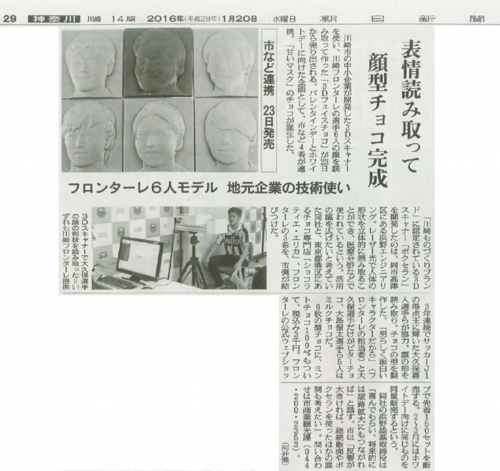 神奈川新聞にて3Dフェイスチョコが紹介されました。